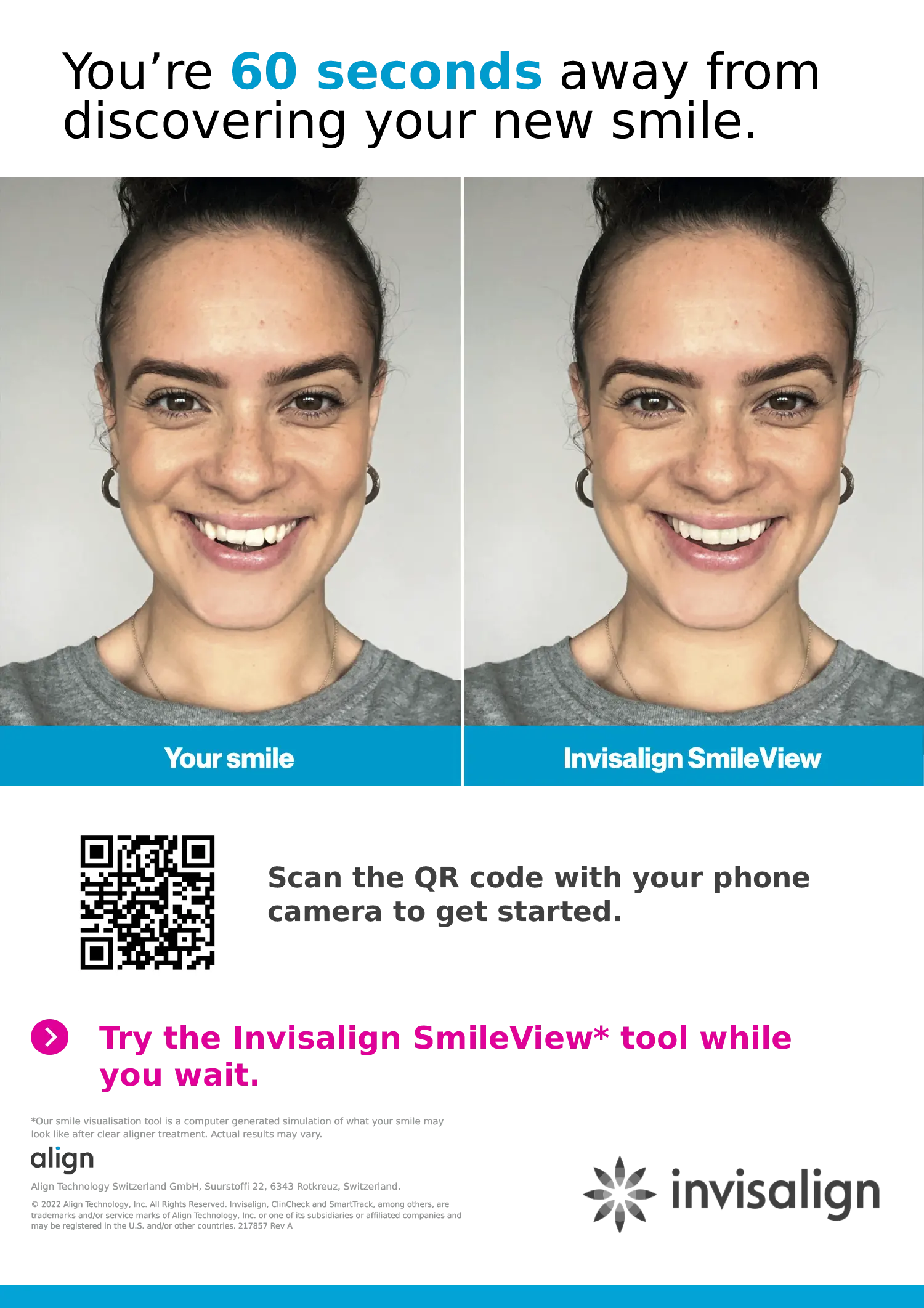Sean the QR code or click on Find Out More to take a Smile View™ assessment to see your potential post-treatment smile!